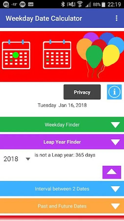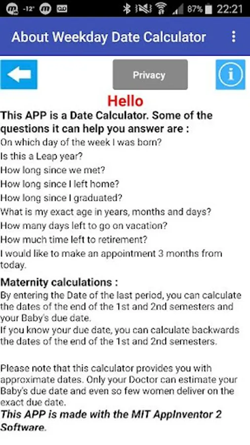 This APP is a Date Calculator. Some of the questions it can help you answer are :