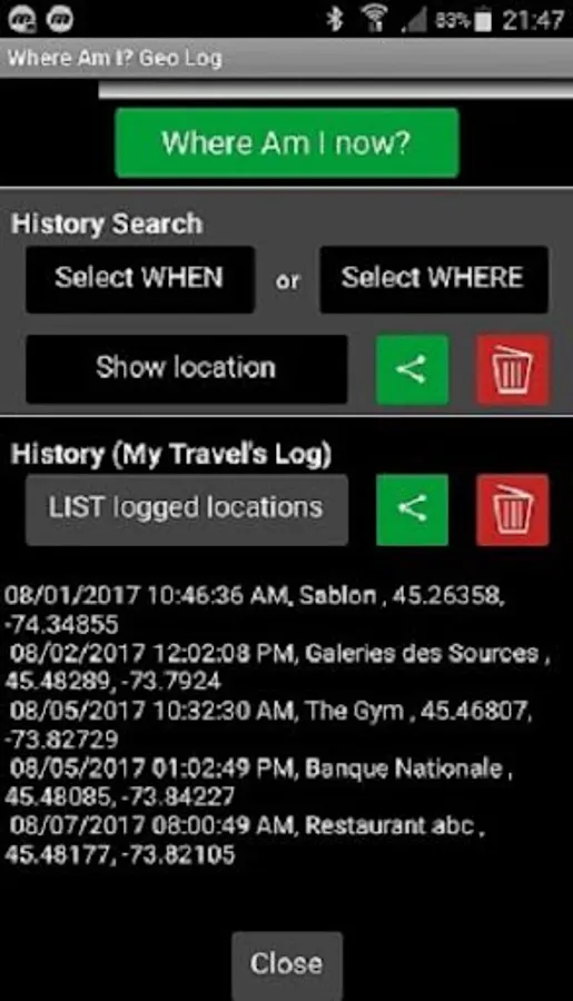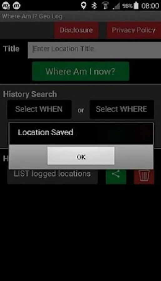 This App allows the user to know its exact location (Latitude, Longitude) and to save that information. Each saved location could be retrieved and visualized on “Google Maps”. It can also be shared by the user with your friends and family.