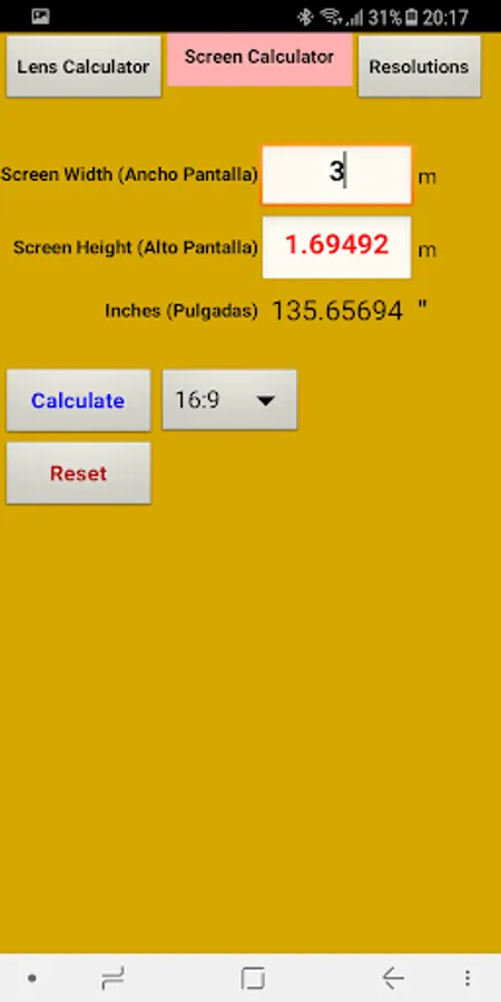 Lens Proyector Calculator
