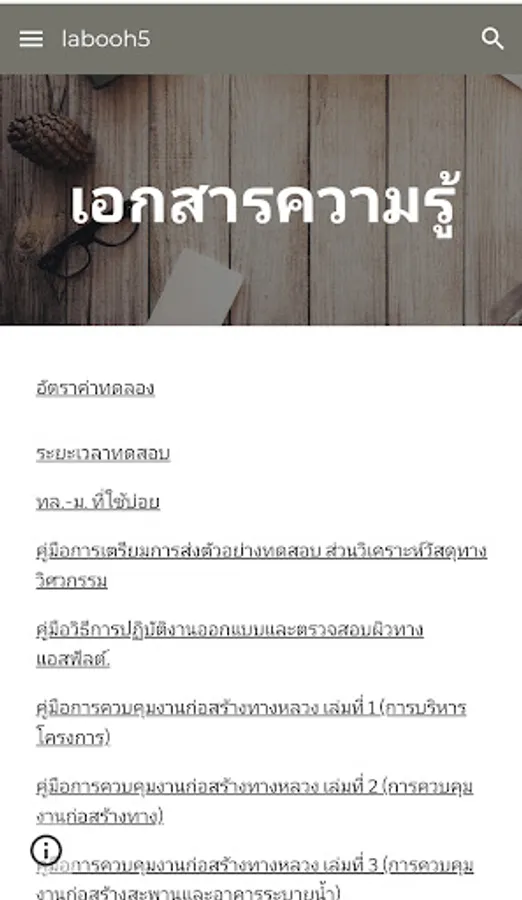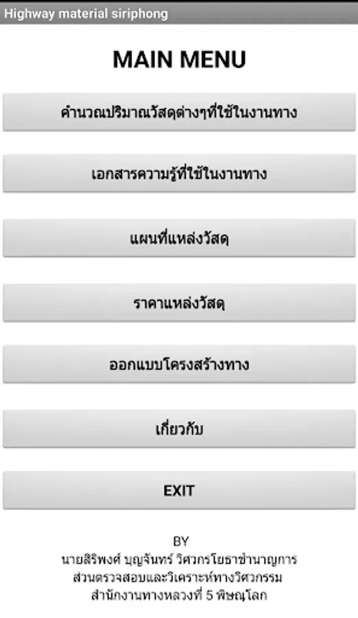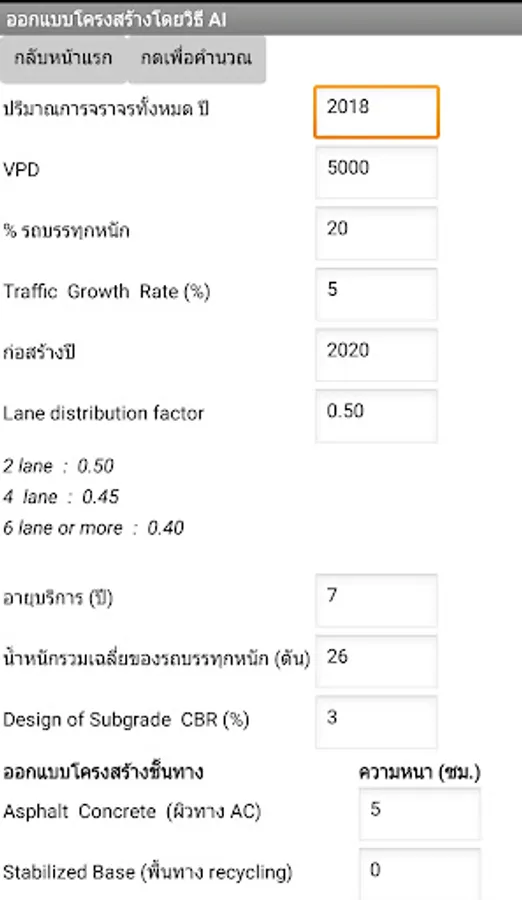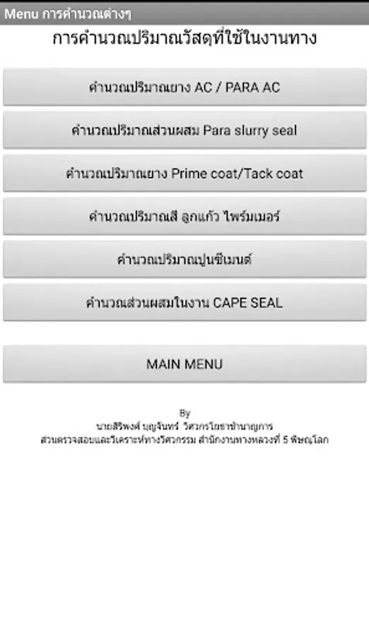 Program to help calculate the amount of rubber ac , mix ratio para slury seal , prime coat tack coat , the amount of cement in the pavement in place recycling , the amount of material used in road marking work , frequently used knowledge documents in the quality control work in the road source map Price of road work materials in the area of Highway Office 5 (Phitsanulok) and road structure design calculation by Asphalt Institute Method