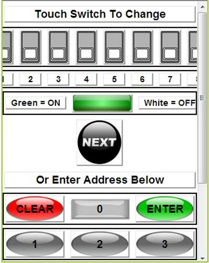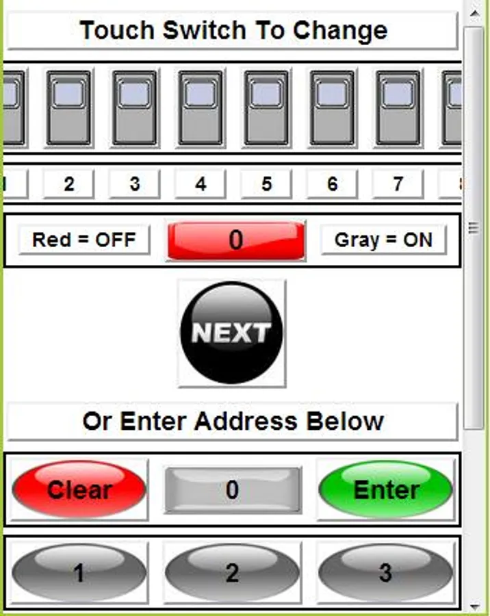 6 - Press the NEXT button to advance 1 on the address and switch.