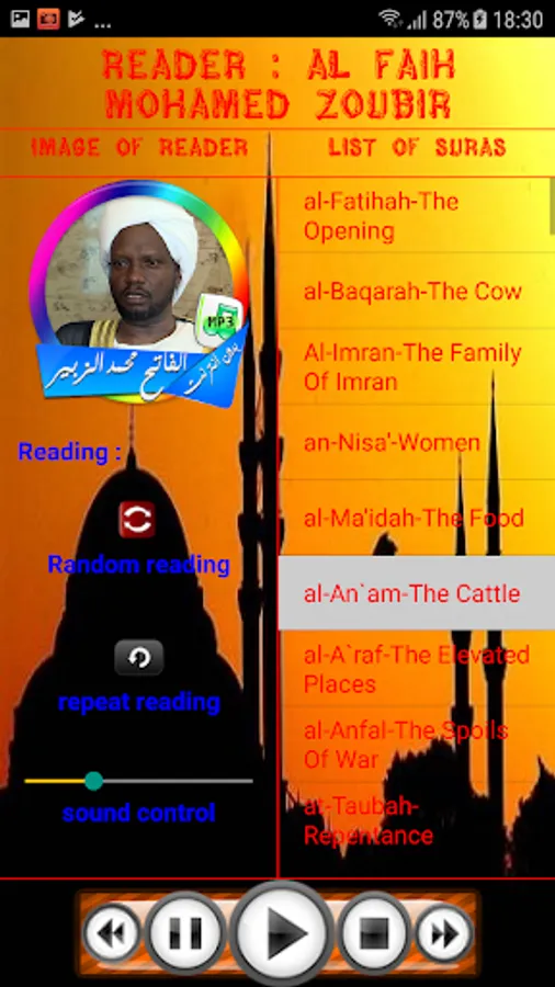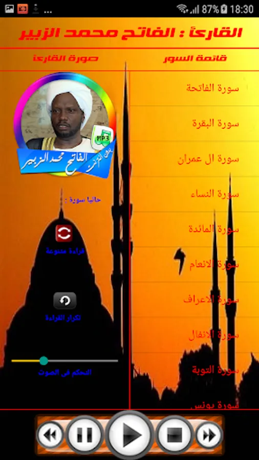 This application is a recitation of the Book of Allah voice Sudanese Fateh Mohammad Zubair Nfna God to listen to him