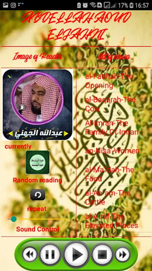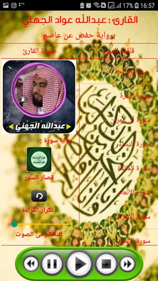 This app is a recitation of the book of God Aziz al-Hakim voice reader Abdullah Awad al-Jahni Broly Hafs about Asim and benefit us God and you listen to it and contains the application on the entire wall of the Koran contains: