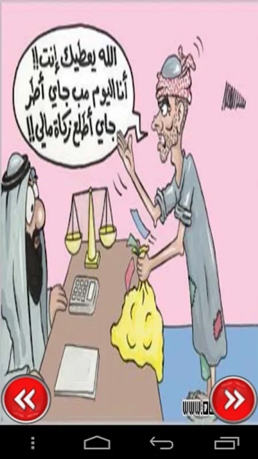 هذا التطبيق هو النسخة الاولى لهذه الطبعة القابلة لتجديد يحتوى رسومات كاريكاتيرية من شتى الصحف والجرائد اليومية كما سيحتوى ان شاء الله على نكت وطرائف مكتوبة باللغة العامية السهلة الفهم واللغة العربية