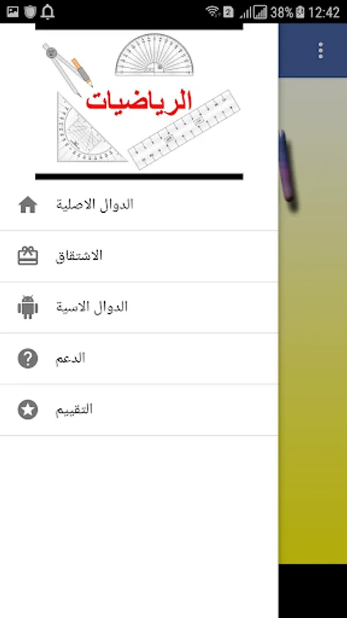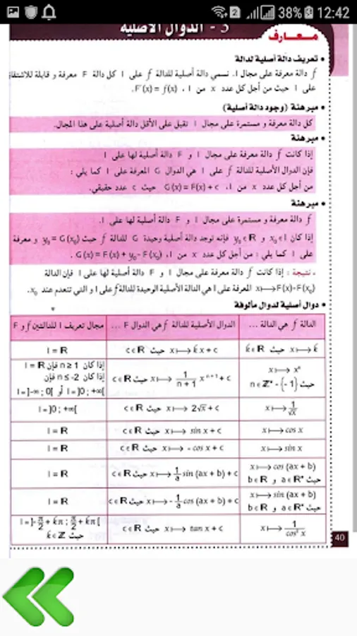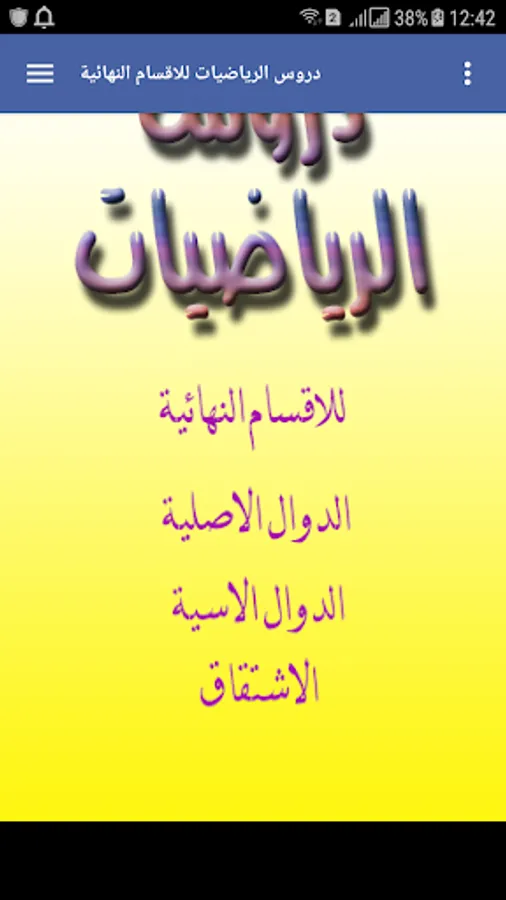 تطبيق خاص بدروس الرياضيات للاقسام النهائية يحتوى على الدوال الاصلية الدوال الاسية الاشتقاق