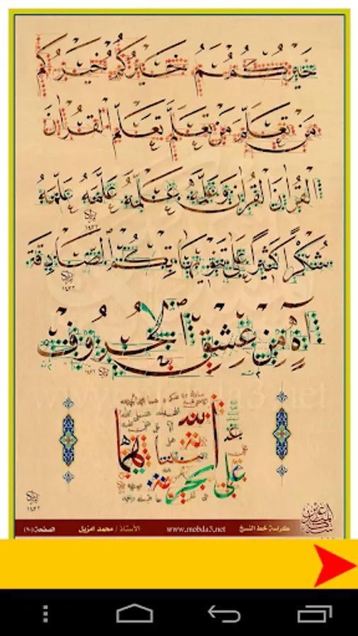 Called back line for frequent use in copying books name and transfer, because it helps the writer to walk with his pen more quickly than others, and then wrote the Koran, since its first Islamic eras, and RPR clarification letters and show the beauty and splendor. Muslim calligraphers have cared for this line being used in the writing of the Koran ..