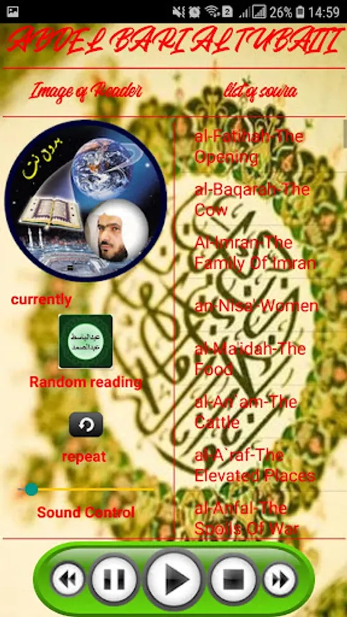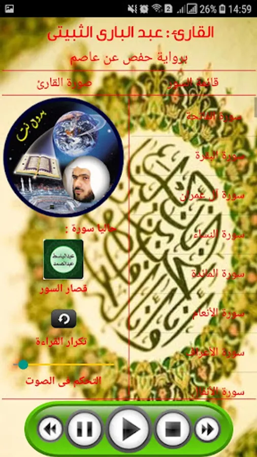 This application is a recitation of the book of God Almighty, the voice of the reader Abdul-Bari al-Thubaiti, Brolith Hafs from Asim, and benefit us God and you listen to it and the application contains the entire Koran contains: