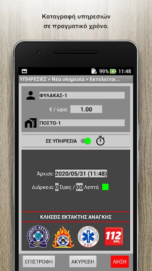 - Provides the ability to make emergency calls to the basic four (4) authorities / services (police, fire, emergency and international emergency number 112) through the application when recording real-time services.