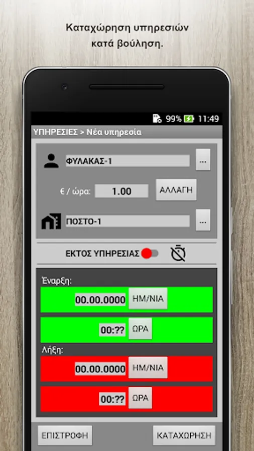 - This application records the services (shifts) that you perform, either in real time or whenever you want to register them.