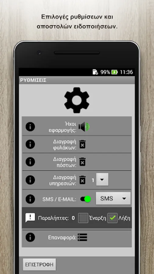 - Offers the ability to notify via "SMS" or "E-MAIL", up to three (3) recipients, at the start or end (or both) of the services recorded in real time.
