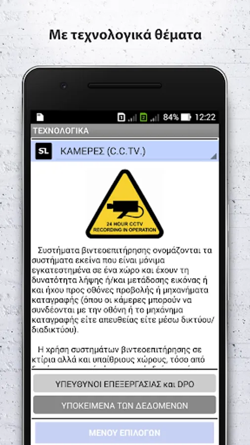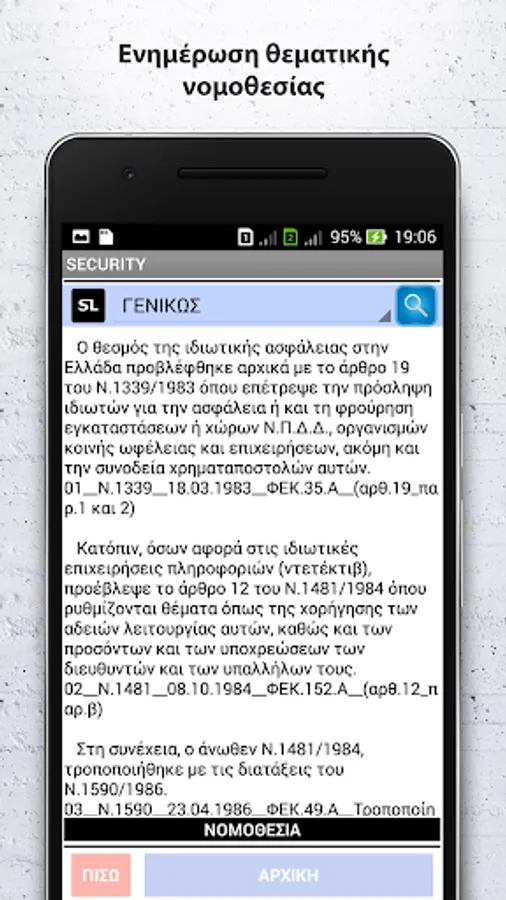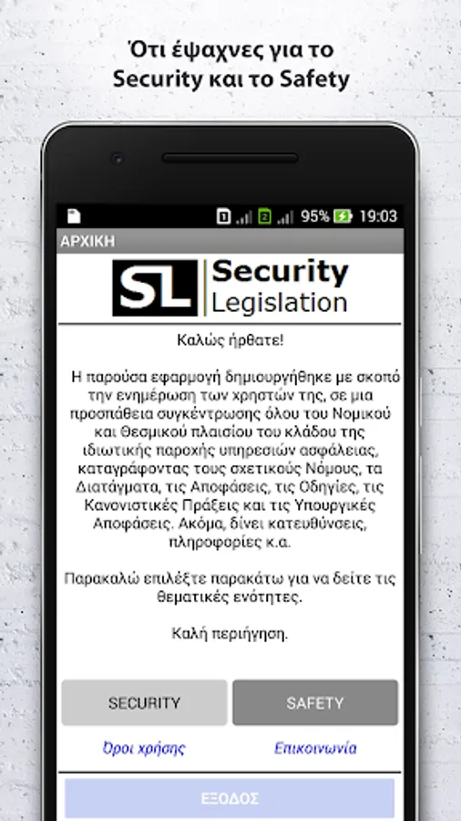Η εφαρμογή δημιουργήθηκε με σκοπό την ενημέρωση των χρηστών της, σε μια προσπάθεια συγκέντρωσης όλου του Νομικού και Θεσμικού πλαισίου του κλάδου της ιδιωτικής παροχής υπηρεσιών ασφάλειας, καταγράφοντας τους σχετικούς Νόμους, τα Διατάγματα, τις Αποφάσεις, τις Οδηγίες, τις Κανονιστικές Πράξεις και τις Υπουργικές Αποφάσεις. Ακόμα, δίνει κατευθύνσεις, πληροφορίες, οδηγίες, κ.α.