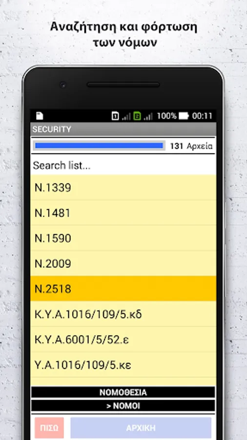 Ακόμα, προσφέρει τη δυνατότητα επιλογής των νόμων από λίστα και φόρτωσής τους στην συσκευή σας.