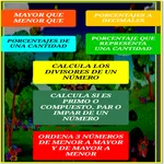 It is useful for calculating percentages to decimals. Tell what percent a quantity represents, determine if a number is greater than or equal to another number. Say if a number is Prime or Composite, even or odd. Order 3 numbers from greatest to least and from least to greatest. It also orders several numbers from highest to lowest and calculates their Median, Range, Mean and Mode or Average.