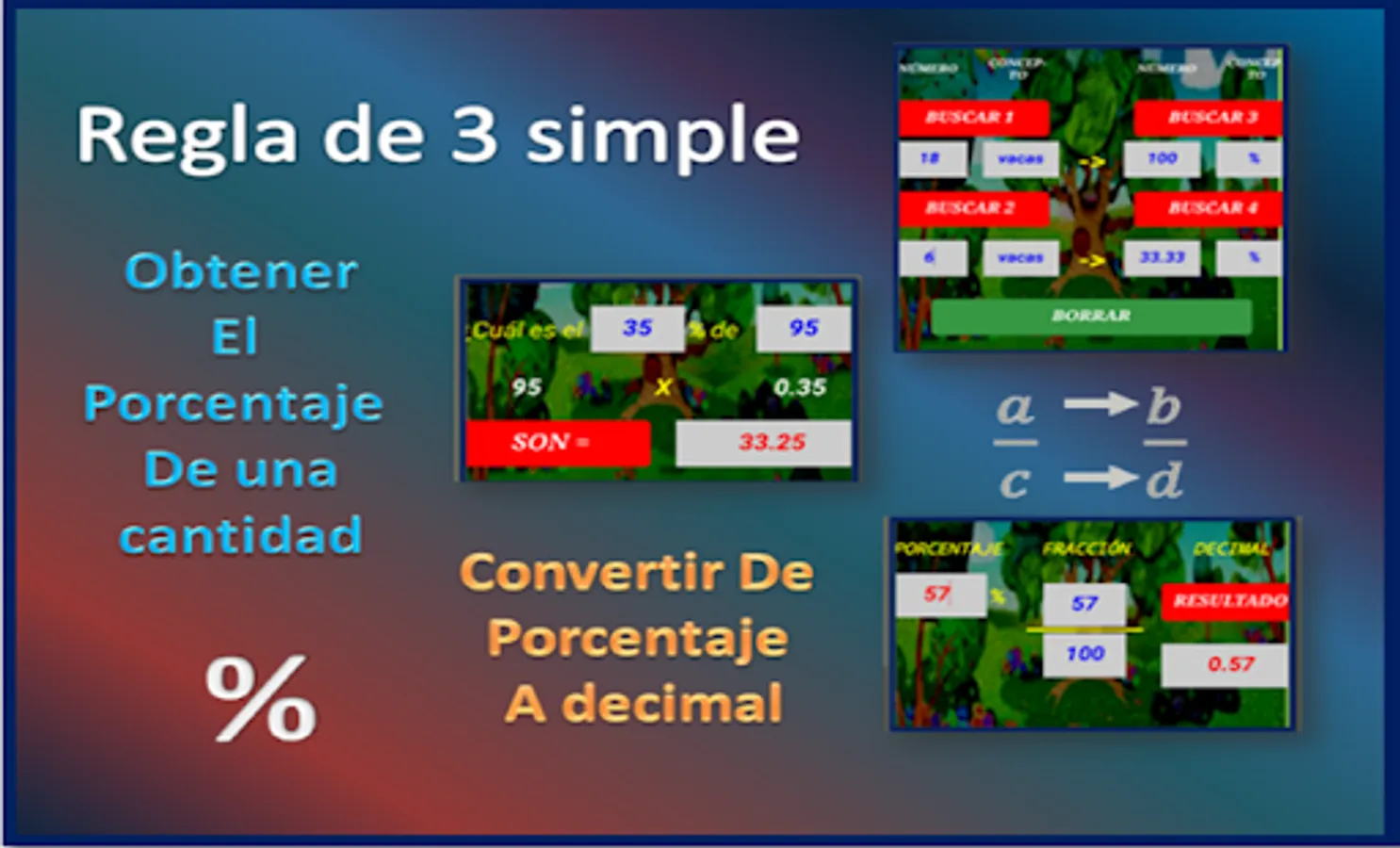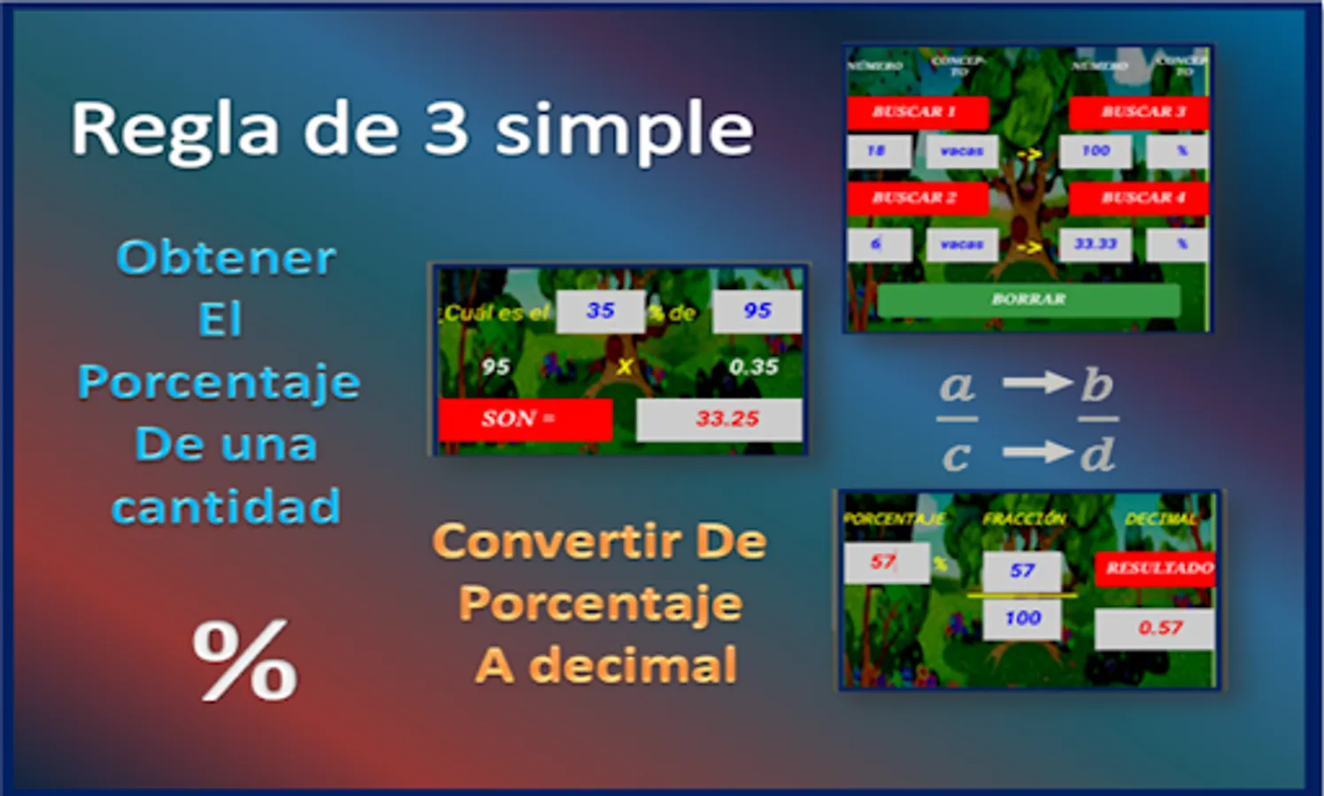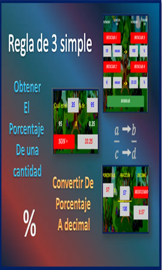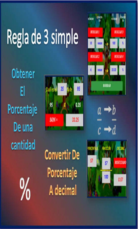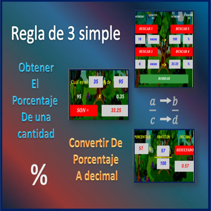 Useful for calculating proportions, simple rule of three, converting from fraction to decimal, calculating the percentage of any quantity, comparing two quantities with greater than, less than, equal to, ordering several numbers from greater to less, calculating median and mean mode.