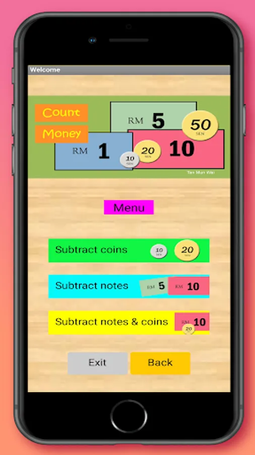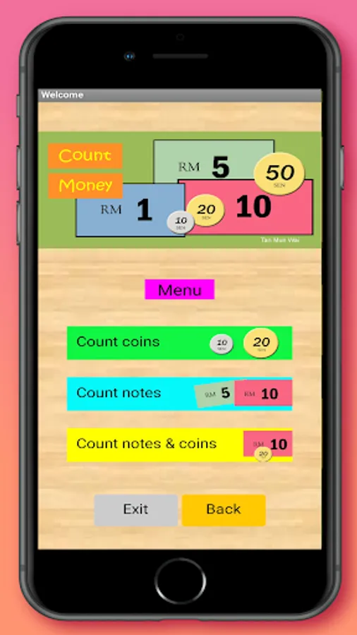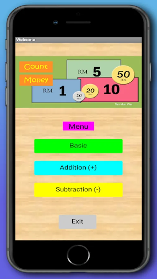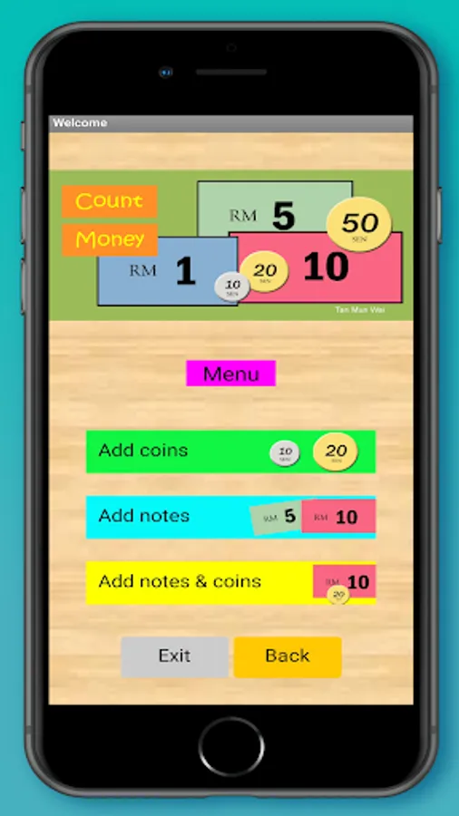 This app is for pupils to practice counting money in Malaysian ringgit and sen. The total amount of money to be counted is kept small. The five sen and higher denomination notes are left out on purpose to increase the rate of success and build confidence in the pupils.