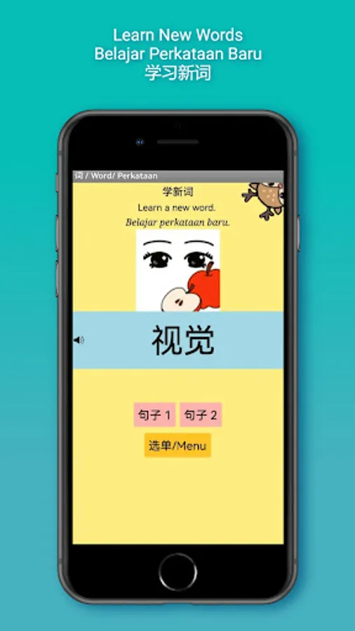 在阅读方面,学生可以跟随发音学读新词,并通过动画、与词相关的句子以及英语和马来语的翻译来理解词的含义和用法。