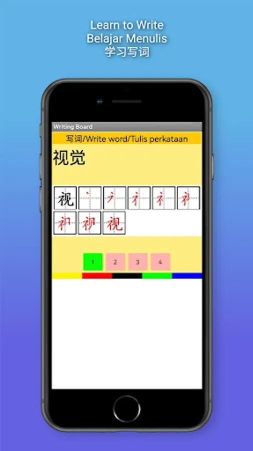 在写作方面,学生可以按照指定的笔画顺序,用手指在所提供的空白处书写。