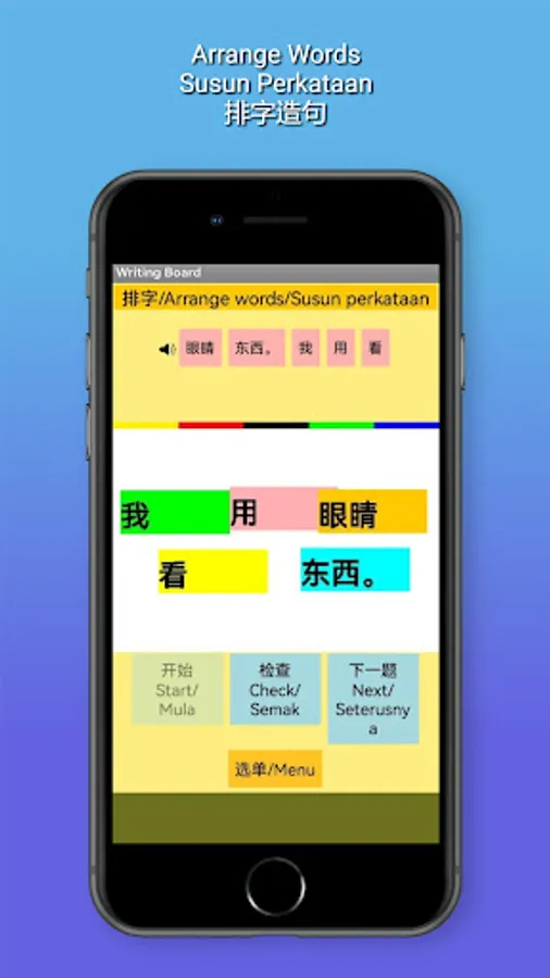 在排字方面,学生重新排列单词来造句。