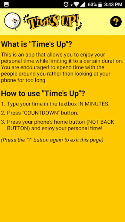This is an app that allows you to enjoy your personal time while limiting it to a certain duration. You are encouraged to spend time with the people around you rather than looking at your phone for too long.