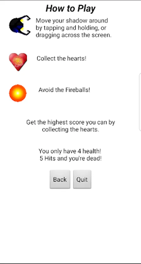 Avoid fireballs! You don't have much health- 5 hits and you die!
