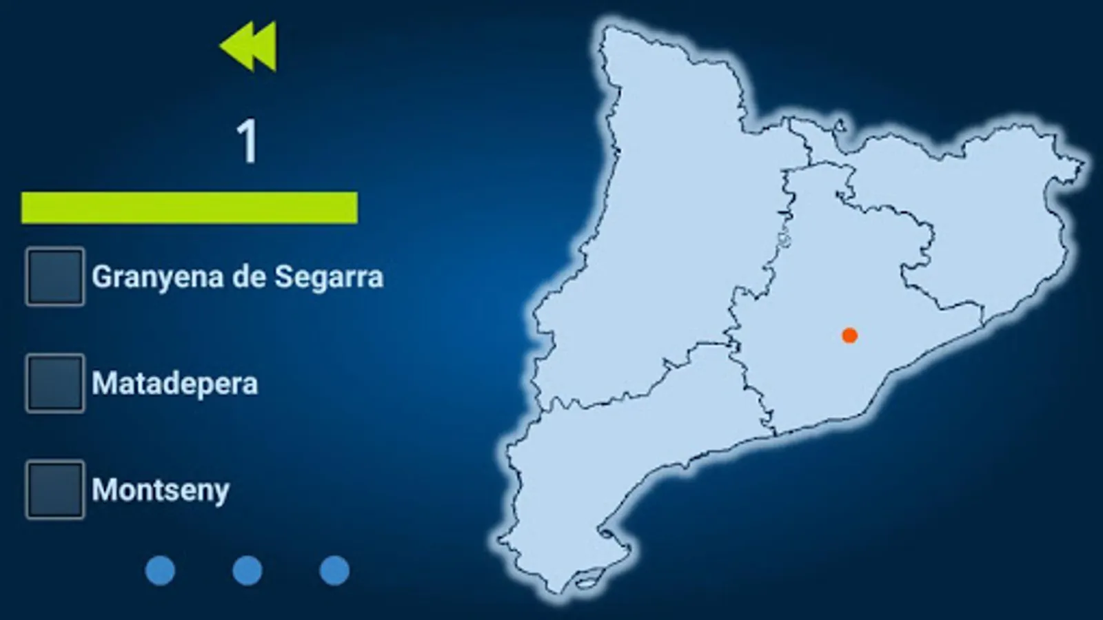 - knowledge mode: the goal is to hit a margin of error of less than 60 km where the towns indicated are. There is no time limit, but only three mistakes can be made.