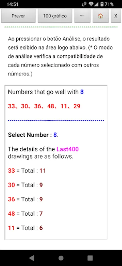 By clicking on the analysis button, you can check the compatibility of each selected number with other numbers with the same settings as when making a prediction.