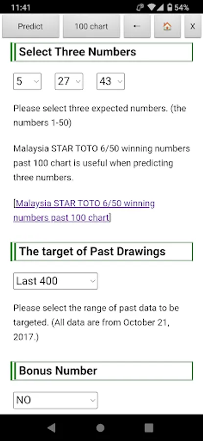 This software is not a perfect prediction software because you have to predict the three numbers yourself using "STAR TOTO 6/50, POWER TOTO 6/55, SUPREME TOTO 6/58 and MAGNUM LIFE winning numbers past 100 chart".