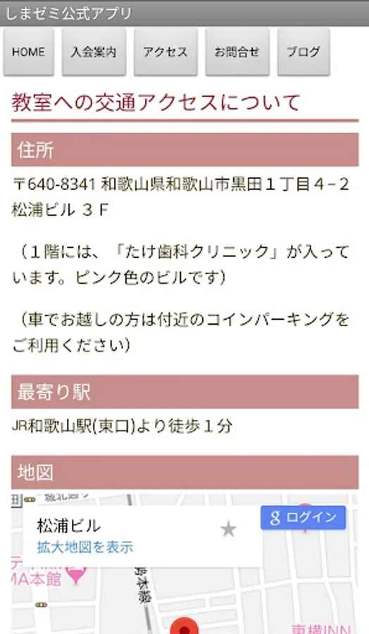 By using the application, frequently used buttons such as “HOME”, “Membership”, “Features”, “Access”, “Inquiry”, and “Blog” are always displayed at the top, making it easy to move between pages.