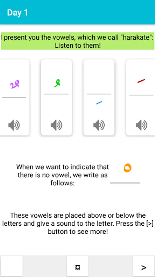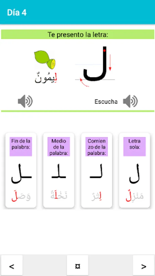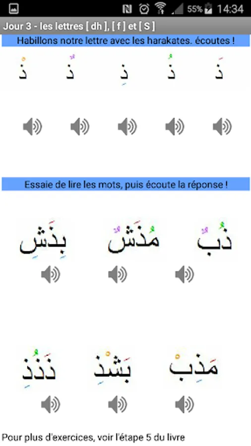Examples and exercises for EACH NEW LETTER LEARNED, with audio corrections