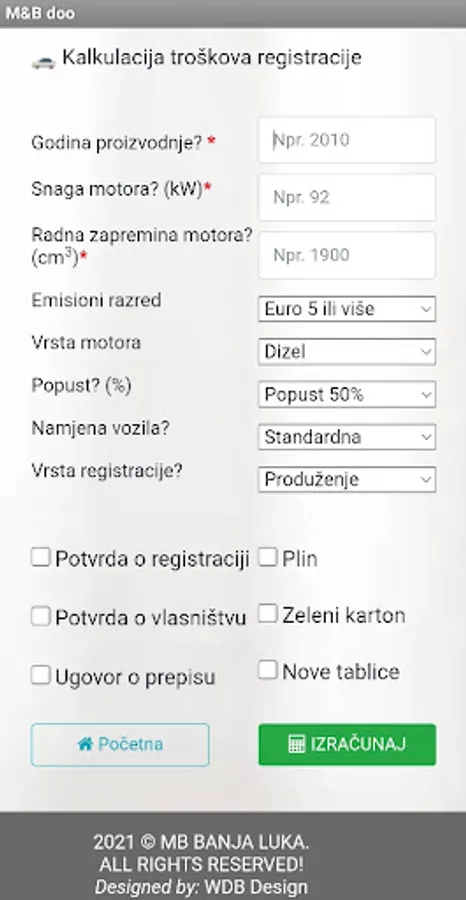 Calculate the amount of car insurance for your passenger vehicle, motorcycle, truck or trailer in a very simple way. Schedule your technical inspection even easier. All in one place! Your M&B doo Banja Luka!