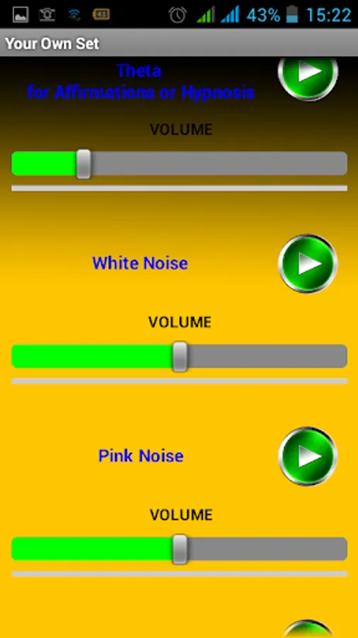 - Your Own Session (Alpha for for Auto-Suggestion; Theta for Affirmations or Hypnosis; white, pink, brown Noise; Water, Birds, Brainsynchronization Background)