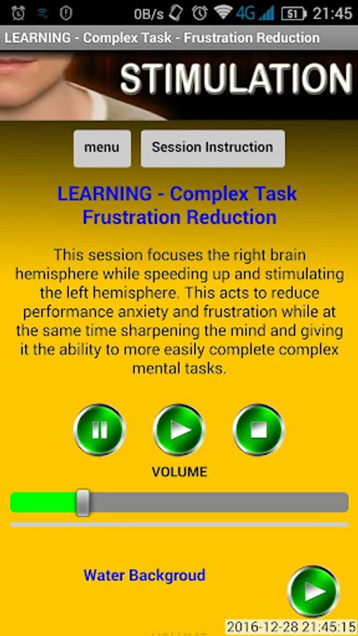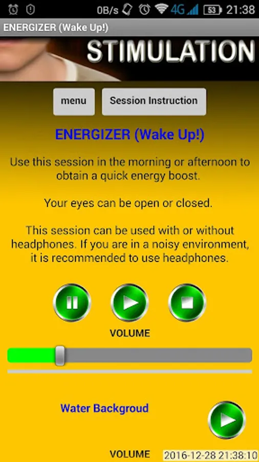 - Your Own Session (Alpha for for Auto-Suggestion; Theta for Affirmations or Hypnosis; white, pink, brown Noise; Water, Birds, Brainsynchronization Background)