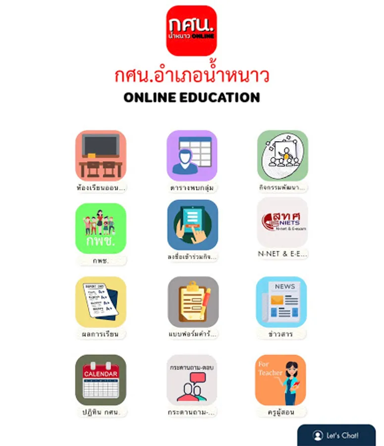 แอพลิเคชั่นสำหรับนักศึกษา กศน.อำเภอน้ำหนาว การศึกษาขั้นพื้นฐาน สามารถสมัครเรียนออนไลน์ ลงทะเบียนออนไลน์ ตรวจสอบผลการเรียนออนไลน์ สามารถทำแบบทดสอบเก็บคะแนนได้