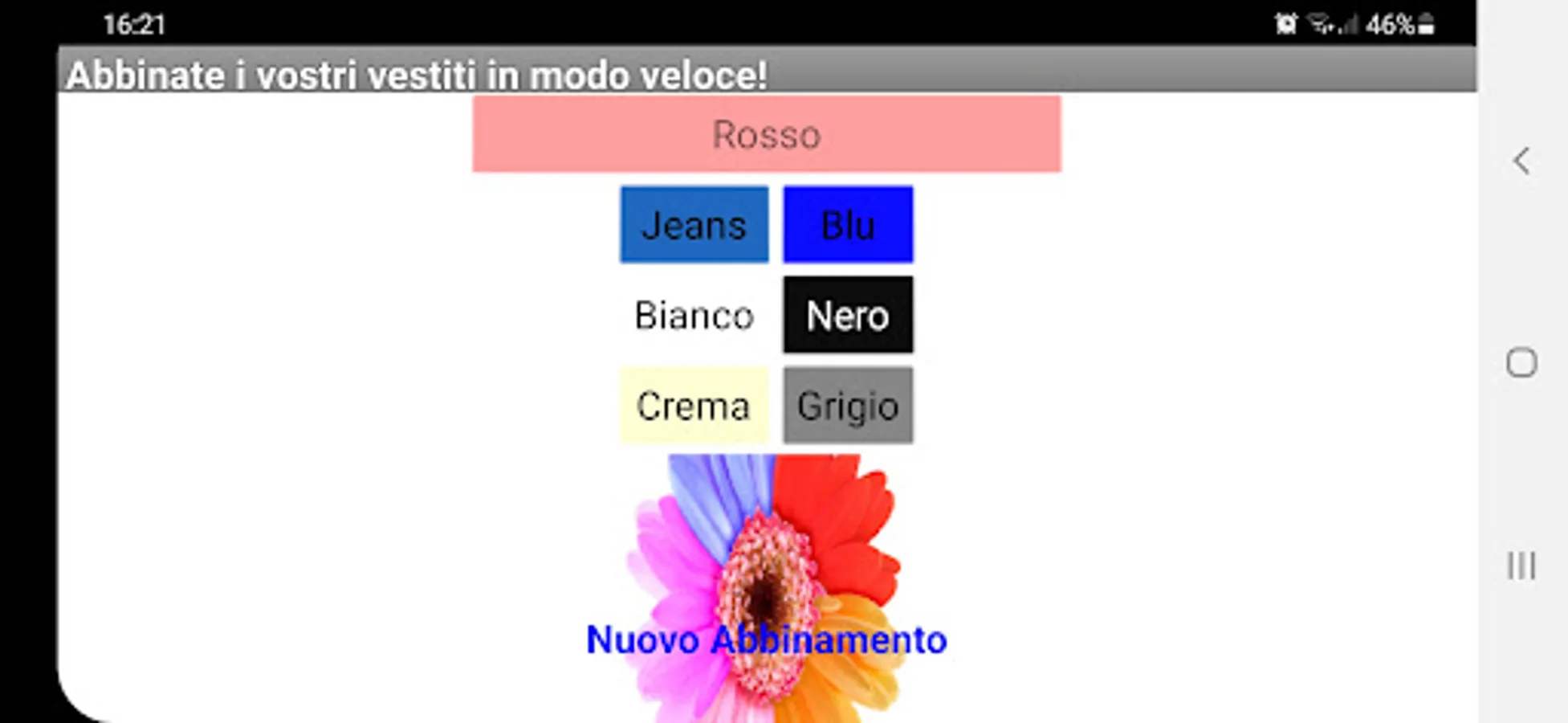 So, after explaining how color matches work, this app of mine allows you; through a beautiful color scale, to know in the blink of an eye, which are the related matching colors:
