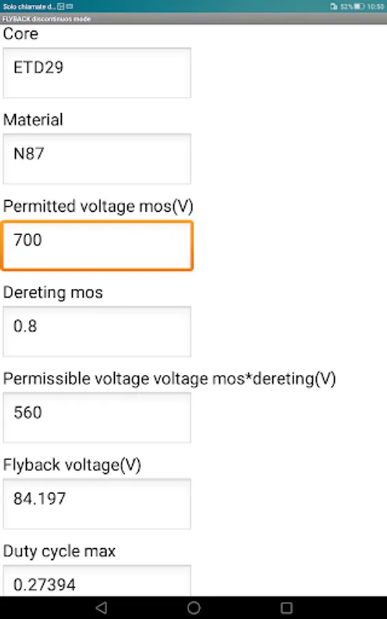 The free version allows the dimensioning up to the verification of the size of the transformer windings.