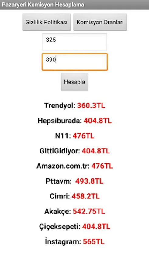 When you enter the arrival and sale price of the product you sell the marketplace commission calculation program, it instantly lists your net earnings in 10 markets after the commission. It saves you time.