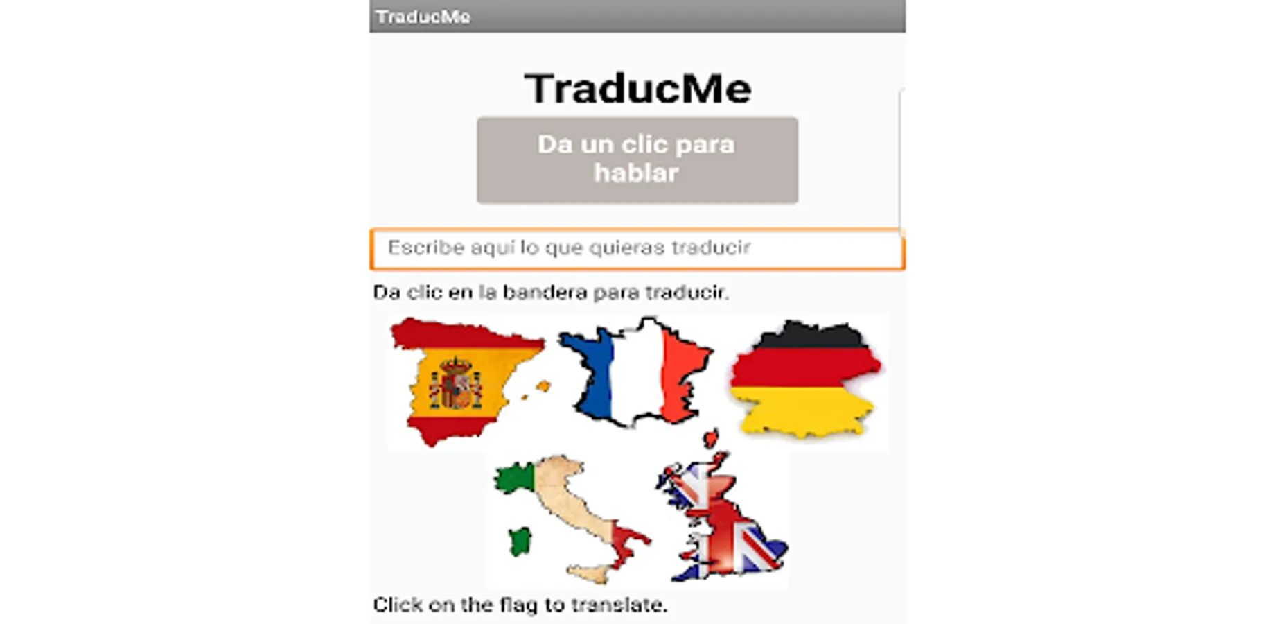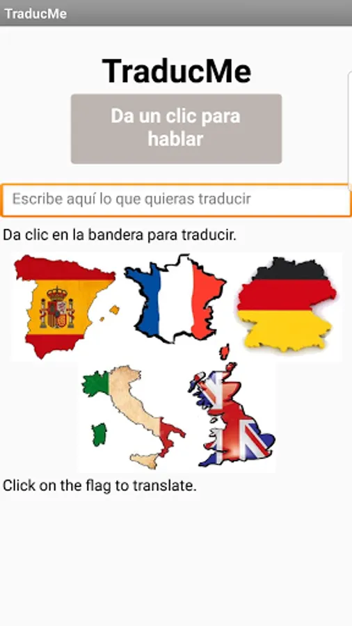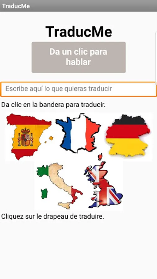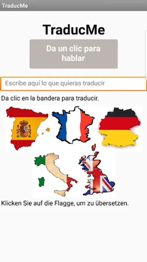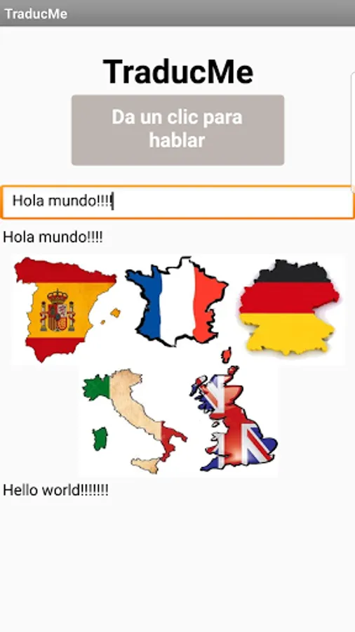 Traductor amigable y divertido que te permite leer y escuchar la traducción que introduzcas ya sea por voz o de forma escrita. Podrás escuchar la traducción en los 5 principales idiomas en el mundo. Español, Frances, Alemán, Italiano e Inglés.