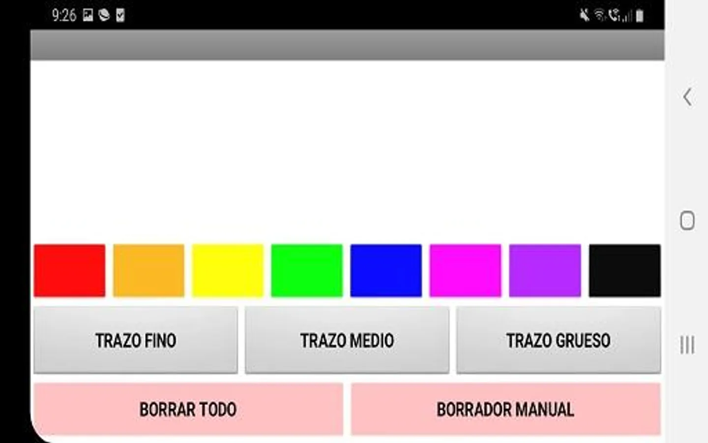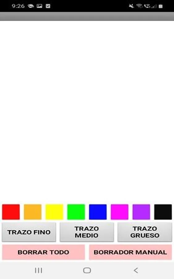 The application allows you to draw and gives you the option to choose between the 8 colors placed in the app. You can also choose the brush stroke (thin, medium or thick) to create your drawing.