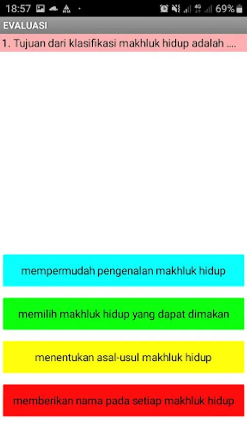This application contains junior high school teaching materials about the classification of living things with exercise questions.