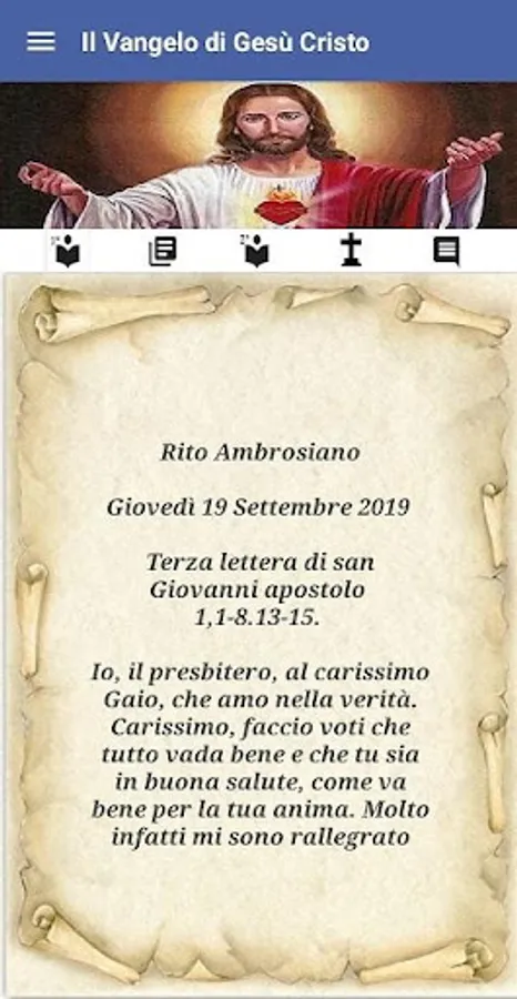 "The Gospel of Jesus Christ" is a simple and easy-to-use app that has no claim other than to keep you company with the readings of the Liturgy of the day (first reading, psalms, second reading, gospel and commentary) in the Roman rite or ambrosiano depending on the choice.