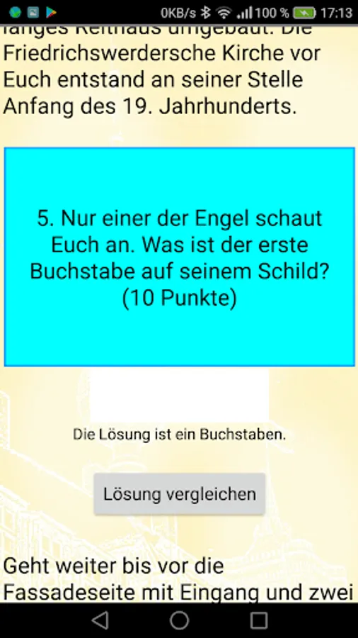Take a city rally through Berlin from Friedrichswerder to Alexanderplatz. Request e.g. Get your kids out and play "easy questions" against "hard questions". After each answer, compare your score and find the next place together. Or start with friends in several groups against each other and try to get as many points as possible.