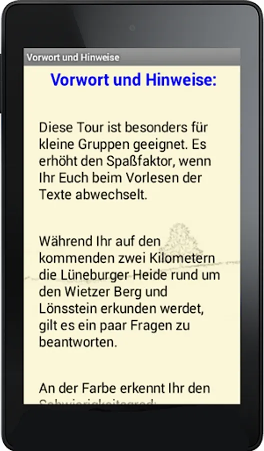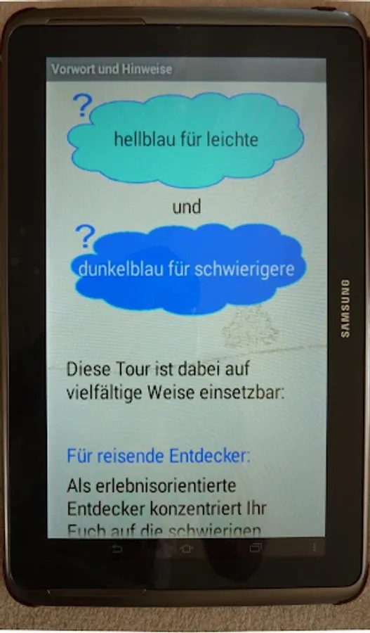 - Our tour book full of directions, stories and puzzles implemented as an app