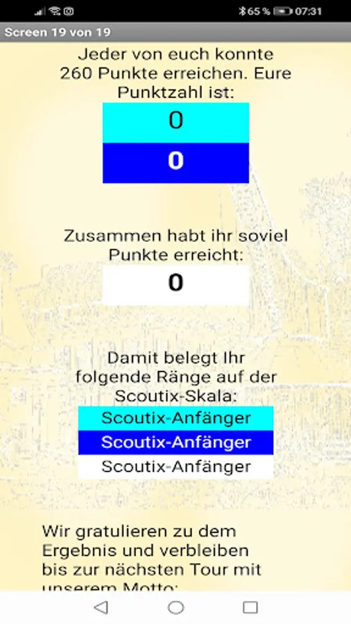 By the way: Scoutix does not request or collect any personal data. The app contains no ads or hidden purchases. There will be no additional costs.