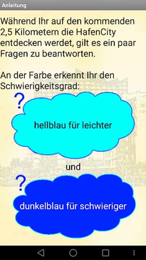 Machen Sie eine Stadtrallye durch die HafenCity. Fordern Sie z.B. Ihre Kinder heraus und spielen Sie "leichte Fragen" gegen "schwere Fragen". Vergleichen Sie nach jeder Antwort Ihren Punktestand und suchen Sie gemeinsam den nächsten Ort. Oder starten Sie mit Freunden in mehreren Gruppen gegeneinander und versuchen Sie, möglichst viele Punkte zu erreichen.