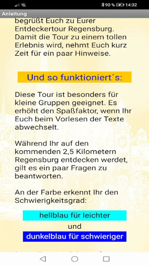 Take a city rally through Regensburg. For example, challenge your children and play "easy questions" against "hard questions". After each answer, compare your score and look for the next location together. Or start with friends in several groups against each other and try to get as many points as possible.