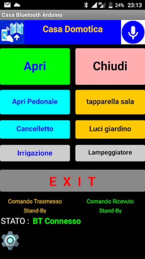 This APP allows you to transmit simple commands via the Bluetooth of your mobile phone, to a core designed to receive such data and process to ensure that your old wire becomes flexible electrical system, wireless, turning your house into a home, but especially it allows you to have different in handy functions all in one APP.