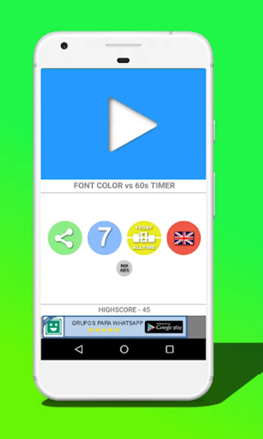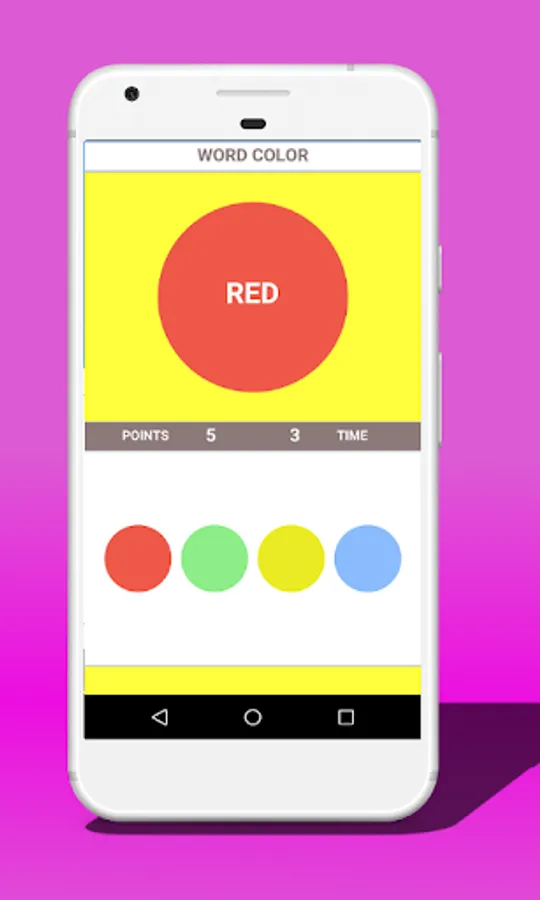Although Word or Color is a challenging game, its mechanics are simple: the purpose, according to the chosen level, is to select correctly the button that matches the color of the dot or the button that matches the color the word says.