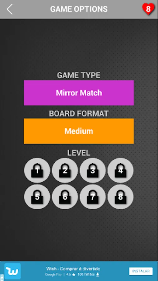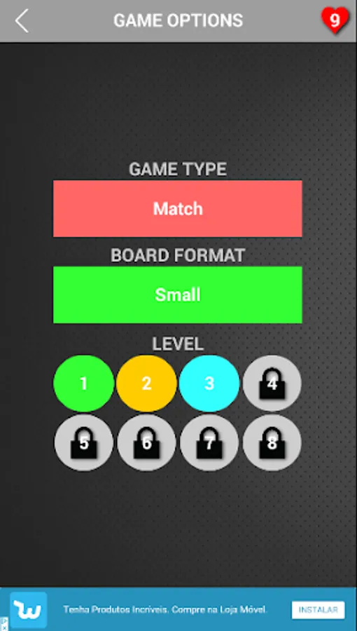 Two game modes to choose. Beat the time or the number of steps of each level to unlock the next level.