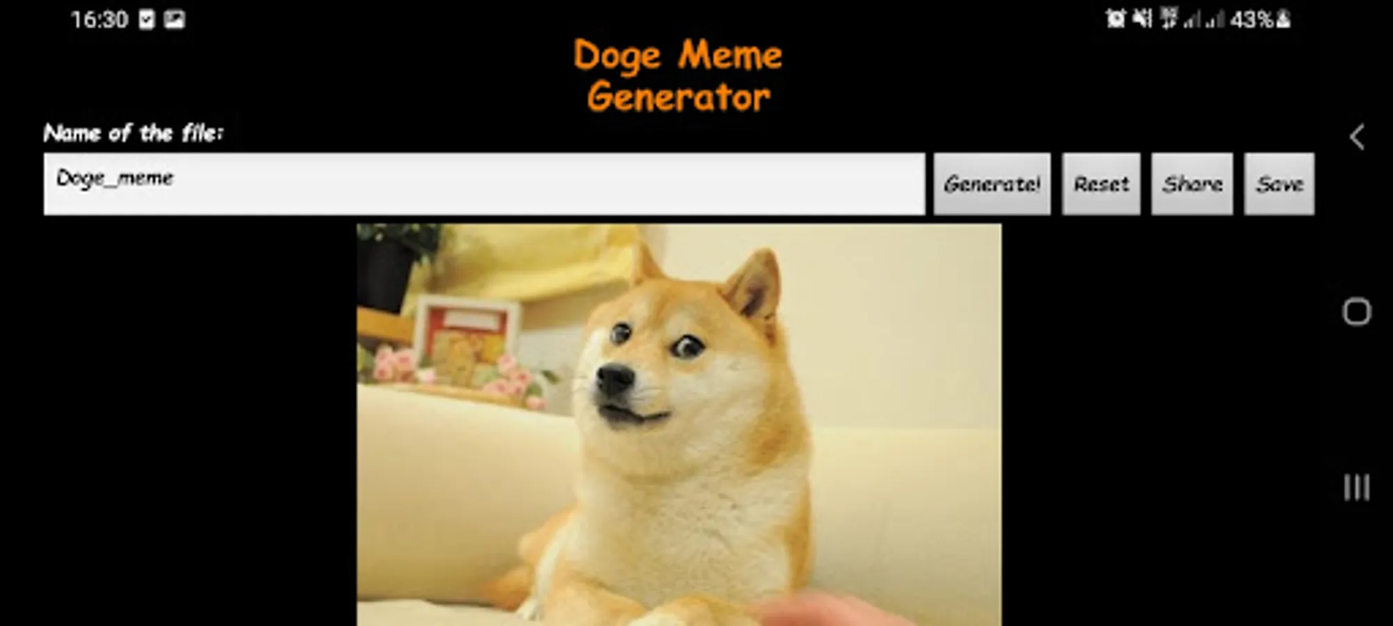 - If you can't find the saved picture it may be in Android/data/appinventor.ai_ondraaudy.Doge_Meme_Generator/files/Pictures