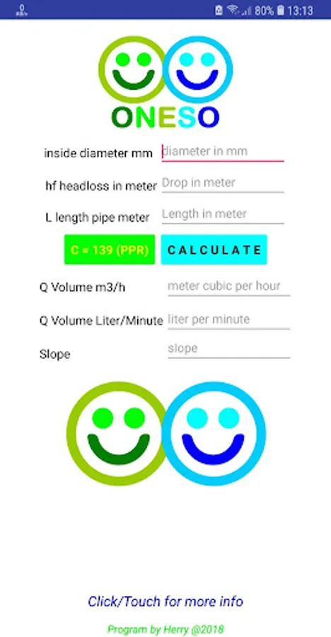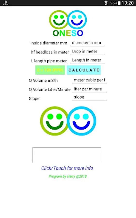 Techindo Water Flow Gravity in pipe Calculator, to calculate the debit of water in pipe from certain drop, C=139, most common PPR, also similar to PVC, but PVC will have bigger flow. This calculator is mainly for pipes full with water at ambient temperature and under turbulent flow. The formulasis based on the Hazen-Williams equation.